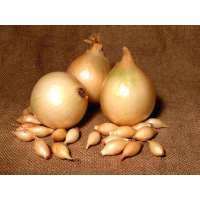 Цибуля сівок Sturon (Стурон) Голландія - 8/21 Сорт - середньопідній, овальний, жовтий Вага - 1 кг Цибуля-сіянка Sturon відноситься до середньопізніх сортів і готова до збирання через 100-115 днів. Форма – довгаста, еліпсоподібна, маса головки 150-200 г. Смак – півгострий. Один із найкращих круглих сортів цибулі. Зберігання до 9 місяців. Цибуля-сіянка вирощена і розфасована в мішки по 10 кг у Голландії. -------------------------------------------------------------------- Передпосадкові хитрощі Після покупки цибулю-сіянку треба перебрати, всі травмовані цибулини викинути, просушити і залишати при кімнатній температурі в паперовому пакеті. Якщо режим нижче +17°С, це може спровокувати утворення стрілок (при ранньовесняній посадці). Але дрібна цибуля-сівачка, діаметр якої менше 1 см не стрілює, навіть якщо температурний регламент не дотриманий. Щоб отримати щедрий урожай, не пошкоджений різними захворюваннями, рекомендується перед весняним висаджуванням, протягом 24 годин, цибулю-сівок прогріти. Наприклад, розстеливши тонким шаром на сонці або розмістивши в полотняних мішечках на теплій батареї. Якщо ви купили посівний матеріал українських чи польських виробників, то не слід забувати, що посадка у прохолодний весняний ґрунт може викликати стрілкування, тому потрібно дочекатися, коли земля нагріється до +12°С. Бажано, за пару годин до розсадження продезінфікувати сівалку в одному з підручних засобів. Можна замочити у розчині мідного чи залізного купоросу чи темно-рожевому концентраті марганцівки чи підсоленій воді. Якщо ви придбали цибулю-сівок виробництва «BROER BV» (Голландія) та «Triumfus Onion Products» (Голландія), то можете не дотримуватися останніх двох рекомендацій. Садимо цибулю-сівок правильно Садять сівач у борозни, донцем з корінцями вниз, а верхівкою, звідки зростатиме зелене пір“я, вгору. У рядку між цибулинками залишають не менше 10 см, відстань у міжряддях не менше 20 см, вглиб на 3-5 см, над цибульками товщина ґрунтосуміші 2-3 см. Дно канавки необхідно розпушити, т.к. щільний ґрунт гальмує зростання коренів. Така простора посадка цибулі-сівки дозволить йому активно розвиватися, і ви гарантовано зберете врожай. Найкращою вважається осіння висадка цибулі – за три тижні до стійких нічних заморозків. Важливо щоб сівач укорінився, але не проріс. Висаджують озиму цибулю-сівок на глибину 6-10 см, щоб запобігти підмерзанню. Насадження можна прикрити невеликим пластом торф“яної мульчі або рослинними рештками, а в зимовий час, по можливості, накидайте на них більше снігу. До речі, з цибулі-сівки, посадженої під зиму, виходять соковитіші товарні плоди, які раніше дозрівають і краще зберігаються. Вирощування цибулі Світло-зелені сходи, що з“явилися, на цибулинних грядках не зайво удобрити розведеним коров“яком, золою або мінеральним добривом. Молода незміцніла зелень любить помірний полив та своєчасні прополювання. У середині літа або на початку осені дозрілу ріпку викопують, кілька днів сушать під навісом, що провітрюється, щоб усохла шийка і засохли верхні луски. І тільки потім обрізають або відривають висохле бадилля. Культивування цибулі оптимально на супіщаних та суглинистих родючих землях, на кислих та важких він росте не дуже добре. Кращими попередниками є картопля, кабачки, огірки, помідори, капуста. Agrosemka Продаж насіння, засобів захисту рослин та добрив для приватного господарства Т