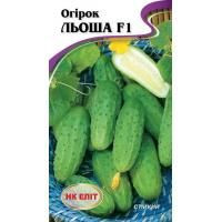 Огірок Льоша F1--Ранньостиглий – 42-46 днів. Переважно жіночого типу цвітіння. Плід продовжений овальний, невеликий, масою 46г, зелений з великими горбиками на поверхні. Врожайність 2,7-4,5 кг/м2. Плоди не схильні до пожовтіння навіть при переростанні, довго зберігають товарність. Універсального використання.