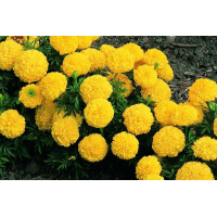 Однорічна рослина. Низькорослі кущі, висотою 30-50см, з прямостоячими бічними пагонами. Суцвіття великі, діаметром 8-10см, махрові, яскраво-жовтого кольору. Вирощується висівом насіння у відкритий ґрунт в травні-червні або для більш раннього цвітіння, на розсаду у квітні. Цвіте з червня до заморозків. Використовується для оформлення групових посадок, рабаток, клумб і садових вазонів.Вага: 0,5 г