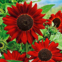 Однорічна рослина з товстими, міцними стеблами, висотою 150-180см. Суцвіття-кошики великі, діаметром 15-20см з пелюстками інтенсивно-червоного забарвлення і чорною серцевиною. Вирощують висівом насіння у відкритий ґрунт по 2-3 насінини в лунку, вибираючи відкриті сонячні ділянки. Соняшник використовують у групових посадках при декоруванні стін і огорож, зрізані суцвіття чудово виглядають в букетах.Вага: 1г