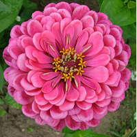 Однорічна рослина, висотою 50-80см. Кущі розлогі, з міцними стеблами. Квіткові кошики діаметром від 8мм до 15см з широкими щільними язичковими і дрібними трубчастими квітками, махрові, бузкового забарвлення. Цвіте з липня до заморозків. Використовують на зріз, у вазах, озеленення, для клумб і садових ділянок. Вирощується висівом насіння у відкритий ґрунт в травні, або для більш раннього цвітіння через розсаду в березні-квітні. Вага:0,5 г