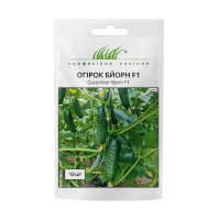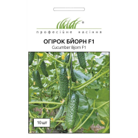 Популярний ранній гібрид з високою ранньою і загальною врожайністю. Сильне, відкрите й компактна рослина з короткими пасинками. В кожній пазусі формує по 3-5 вирівняних, крупнобугорчатых плода зеленого кольору з глянцем. Хороша якість і бугорчастисть плодів зберігається при вирощуванні в спекотних літніх умовах. Плоди відрізняються відмінними смаковими якостями і невеликою насіннєвою камерою. Завдяки високій стійкості до стресових умов вирощування, гібрид здатний витримувати значні навантаження плодами не знімаючи зав“язі. Бьорн F1 має один з найвищих потенціалів врожайності серед наявних на ринку України гібридів. Рекомендується для вирощування в першому і другому оборотах в плівкових теплицях.