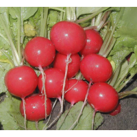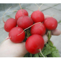 Дуже ранній сорт редису універсального призначення. При вирощуванні у закритому ґрунті період дозрівання 18-20 днів, а у відкритому - 20-22 дні. Коренеплід округлої форми, яскраво-червоного кольору, діаметром 4-5 див Довго зберігає товарний вигляд. М“якоть білосніжна, щільна, хрустка, без неприємної гіркоти.