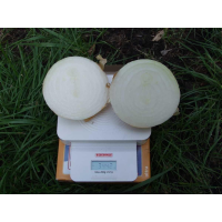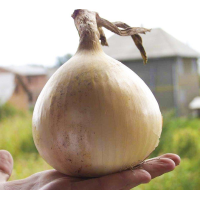 Пізньостиглий сорт салатної цибулі для свіжого вживання і короткого (4-5 місяців) зберігання. Рослина потужна з хорошою силою росту, вимагає високих доз мінеральних добрив. Надвисокий урожай великих (до 900 г) цибулин. Цибулини щільні, округло-плескатої форми, привабливого золотистого забарвлення, дуже солодкі. Характеризуються високим вмістом вуглеводів і соку. Всі цибулини однорідні за розміром, який залежить від густоти посадки. Підходить як для вирощування розсадою (касетна технологія, вік розсади 45-60 днів), так і прямого висіву (в південних регіонах України).