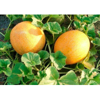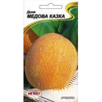 Диня Медова казка--Ранньостиглий - 65-70дней. Урожайний сорт. Плоди округлої форми, масою 1,5-2 кг, оранжевого кольору з яскраво вираженою сіткою на шкірці. М“якоть біла, товста, соковита, дуже солодка і ароматна. Цінність сорту: стійкість до фузаріозу та стабільне формування плодів навіть в стресових умовах. У північних районах рекомендується вирощувати через розсаду. Використовують у свіжому вигляді.