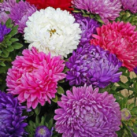 Однорічна рослина. Спеціальний сорт для зрізання. Кущ гіллястий, висотою 60-70см, пірамідальної форми. Квітконоси міцні, листя мало, довжиною 40-50см. Суцвіття синього, рожевого, червоного кольору та їх відтінки, кругло-плоскої форми, густо махрове. Діаметр суцвіття 12-14 см, складається з декількох рядів язичкових квіток різноманітних забарвлень, в центрі розташовані трубчасті квітки. Використовується для зрізу. Насіння на розсаду висівають в кінці квітня на початку травня.