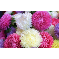 Астра Парад фарб--Однорічній, холодній, світолюбній рослині. Висота рослин до 60см, потрібно пересаджувати на нове місце кожного року, щоб захиститися від фузаріозу. Кольори різних кольорів, діаметром 10-15 см, використовуються на зріз. У кінці квітня, травня, вони висаджують у відкритий ґрунт. Колірає з липня по вересня. У вологому ґрунті виходи з“являються на 7-8-й день після посіву.