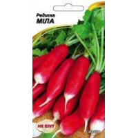Редиска Міла--Ранньостиглий – 20-23 дні. Коренеплід червоний, з білим кінчиком, циліндричної форми. М’якуш соковитий, білий, з приємним смаком. Урожайність до 2,2 кг/м2. Сорт стійкий до посухи, понижених температур, стрілкування. Вирощують у відкритому ґрунті та під плівкою. Використовують у свіжому вигляді.