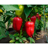 Середньоранній - 125 - 130 днів від сходів. Високоврожайний сорт для вирощування у відкритому та закритому грунті. Плід широко конусний, середнього розміру, середня маса плоду 140-160г. У технічній стиглості колір плодів - зелений, в біологічній - темно-червоний, смак солодкий. Використовують у свіжому вигляді, для переробки та фарширування. Вирощують розсадним способом.