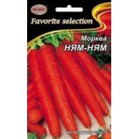 Морква Ням-ням--Середньопізня - 115-125днів. Коренеплід конічної форми, оранжево-червоного кольору, довжиною 13-15см, діаметром 2,2-3,7см. Маса коренеплоду 145-220г. Забарвлення поверхні, серцевини і м’якоті коренеплоду – оранжево-червоне. Серцевини майже не має. Поверхня гладенька.