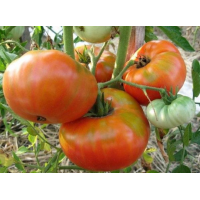 Томат Бичий лоб--Середньостиглий сорт. Рекомендується для вирощування у відкритому ґрунті. Рослина потребує додаткового підв’язування і формування. Салатний. Смакові якості у свіжих помідорів відмінні. Плід округлий, гладенький, м’ясистий. Забарвлення незрілого плоду зелене з темним п’ятном біля плодоніжки, спілого - червоне. Маса плоду 140-400г. Врожайність висока. Використовують у свіжому вигляді. Вирощують розсадним способом