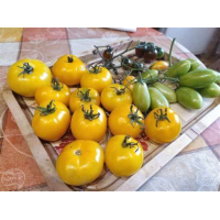 Томат В десятку 0.1г--Відмінний, урожайний сорт для відкритого ґрунту і плівкових теплиць, здатний порадувати дуже хорошим урожаєм смачних плодів. Сорт середньостиглий. Висота рослин 40-60см. Плоди яскраво-жовтого кольору, м’ясисті, округлі, гладенькі і щільні, не розтріскуються, солодкі, масою 230-280г. Сорт характеризується підвищеною стійкістю до захворювань, високим вмістом цукру і бета-каротину. Врожайність при хорошому догляді досягає 3,1-4кг з куща. Вирощують розсадним способом.