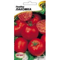 Томат Лакомка 0.1г--Суперранньостиглий високоврожайний сорт, плоди мають привабливий вигляд. Вегетаційний період від сходів до технічної стиглості – 85-90днів. Кущ висотою 40-50см. Плід округлої форми, масою 90-120г, червоного кольору, відмінних смакових якостей. М’якоть м’ясиста, ароматна, солодка. Транспортабельний. Використовується для споживання у свіжому вигляді. Вирощують розсадним способом.