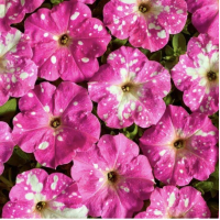 Петунія Дот Стар F1 — це нова серія петунії, яка заворожує своєю красою і зовнішнім виглядом, створюючи гарний настрій як на клумбі і квітнику, так і в підвісних кашпо, вазонах, балконних ящиках. У квіток яскраве забарвлення, яке поєднується з дрібними білими вкрапленнями. Яскравість і форма малюнка залежать від погодних умов, тому кожна квітка унікальна по-своєму. Сама рослина компактна, 30–35 см у висоту, добре гілкується. На тлі рясної зелені добре виділяються яскраві квітки петунії. Розмір квітки 6–7 см. Петунія довго цвіте, швидко відновлюється після дощу і перезволоження. Насіння петунії швидко і дружно сходить.