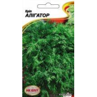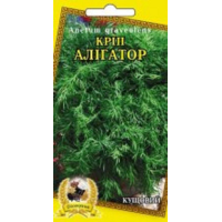 Кріп Алігатор --Середньостиглий, до товарного пучка – 40-45 днів. Кущового типу. Розетка листя стояча, велика, листя великі, забарвлення темно-зелена, ароматні, з сизим відтінком, з розсіченим сегментами. Урожайність зелені 1,3-2,6 кг/м2. Висівають рядковим способом і врозкид, з ранньої весни і до осені. Придатний для використання у свіжому, висушеному, солоному і замороженому вигляді.