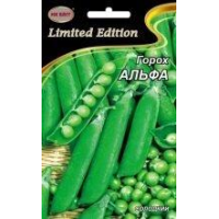 Горох Альфа-- Ранньостиглий – 65-80 днів. Рослина, висотою 50-70см. Боби темно-зелені, довжиною 7-8 см, містять по 5-9 насіння. Горошок молочної стиглості темно-зелений, ніжний, соковитий, солодкий на смак. Врожайність 0,4 кг/м2. Культура холодостійка, витримує невеликі заморозки. Використовують у свіжому вигляді та для консервування.