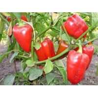 Перець Анастасія--Ранньостиглий - 105 днів. Кущ штамбовий, висотою 60-80см. Плід конусоподібний, товстостінний 5-8мм, червоного кольору. М“якуш соковитий, солодкий. Врожайність 3,2-6,1 кг/м2. Маса плоду 200-250г. Стійкий до хвороб. Для відкритого ґрунту. Використовують у свіжому вигляді, при консервуванні та приготування лечо.Вага: 0.3 г-------------------------------------------------------------Сорти перцю поділяють на солодкі й гострі, або гіркі. Провідне місце належить овочевому (солодкого) перцю з ніжною, соковитою і м“ясистою м“якоттю, який використовується в різних видах: у свіжому в якості салату, консервованому, засоленому, тушкованому, фаршированому та інших.Лікувальні властивості перцюПерець ні в якому разі не можна висаджувати в грунт, якщо раніше там росли рослини сімейства пасльонових, кращими попередниками для перцю в ґрунті є багаторічні трави, цибулю, а також огірки і капуста рання. На колишнє місце зростання, перець можна повертати через 3-4 роки, саме цей час потрібно землі для свого повного відновлення родючості для перцю. Існує правда і виключення, коли грунт може відновлюватися швидше цього терміну, таке можливо тільки при використанні ЕМ-технологій. Пересадки перець переносить вкрай погано, через слабку регенерацію кореневої системи, саме з цієї причини, розсаду перцю, як правило, вирощують у касетах або горщиках. Для пророщування насіння перцю оптимальною температурою повітря вважається 18-22С, мінімальною температурою для пророщування насіння є 16-19С, а для грунту це 14-16С. Молоденькі сходи, перш ніж їх будуть знижуватись, поливають двічі на тиждень розчином кальцієвої селітри, яка розлучатися 1г на 1л води. Коренева система перців інтенсивно розвивається до того моменту, як починають утворюватися плоди. Щоб допомогти інтенсивному розвитку кореневої системи перцю, часто використовують стимулятор росту «Радифарм», який розлучатися 200-250 г на 100 л води, інтервал у використанні цього стимулятора приблизно 10-12 днів. Далі необхідно робити комплексні підживки перцю, як кореневими, так і не кореневими добривами, наприклад, добрива кореневі «Майстер» і не кореневі «Плантафол». Перед садінням у відкритий грунт перець повинен мати не менше 6-7 справжніх листків, і вік перцю повинен бути приблизно 40-50 днів. Перед тим, як висаджувати розсаду перцю в грунт, її необхідно загартувати. Приблизно за кілька днів, а саме, 3-4 дні до висадки перцю у відкритий грунт, рослина потрібно підгодувати «Превікуром», який розводиться 15-20мл на 10л води.вирощування перцюПри вирощування перцю у відкритому грунті, слід пам“ятати, ні в якому разі перцю не можна давати пересихати, так як перець дуже вимогливий до вологості грунту і не виносить навіть короткочасної посухи і перегріву. Щоб рослини могли легше переносити різні стресові умови, перцю потрібно провести підгодівлю некорневую стимуляторами, наприклад, такими як добриво, Мегафон або можна використовувати стимулятор із серії «Марс». Найкраще в несприятливих умовах виживають гібриди перців, такі як Микита, Геркулес та Денвер.Перцю необхідно час від часу проводити розпушування грунту, так як ці рослини дуже чутливі до повітряного режиму грунту. Щоб запобігти розвиток верхівкової гнилі, регулярно потрібно проводити підживлення добривами, що містять кальцій. Крім кореневих підживлень, потрібно проводити і деякі підживлення