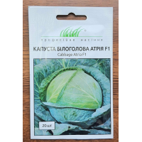 Голландский гибрид Атрия F1 с периодом вегетации 115-120 дн. считается среднеспелым сортом с повышенной урожайностью. Кочаны гибрида округлые, с серо-зелеными, среднего размера листами и заметным восковым налетом. Срез отличается зеленовато-белым оттенком, структура однородная, плотная. Масса кочана может достигать 10 кг. Стойкость к патогенной гнили, трипсам и фузариозу делает этот сорт особо востребованным у аграриев. Кроме этого, гибрид не нуждается в подкормке и может произрастать на неплодородных почвах. За время длительного хранения капуста набирает сочность и может быть использована для приготовления блюд в свежем и переработанном виде. Товарный вид кочаны сохраняют до весны.Вес:20шт
