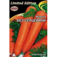 Морква Без Серцевини-- Середньопізній сорт. Вегетаційний період від сходів до технічної стиглості 120-140 днів. Коренеплід великий, циліндрично-конусоподібної форми з тупим кінчиком, довжиною 18-23см, масою 130-140г, повністю занурений в грунт. Забарвлення поверхні, м“якоті і серцевини оранжево-червоного кольору. Сорт універсального призначення. Використовується для тривалого зимового зберігання, споживання в свіжому вигляді і переробки. Має підвищений вміст каротину. У 1 г міститься близько 500-600 насіння. При посіві у вологий грунт сходи з“являється на 20-21-й день після посіву.