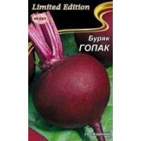 Буряк Гопак--Середньоранній -105-132 днів. Урожайний. Коренеплід кулястої форми, що легко виривається, маса 190-310 р. М“якуш темно-червоний з бордовим відтінком, без білих прожилок, соковита, ніжна, солодка. Врожайність 4,3-4,8 кг/м2. Для дитячого і дієтичного харчування . Культура щодо жаростійка. Сорт стійкий до хвороб. Добре зберігається взимку. При пізньому посіві (1-10 червня) отримують коренеплоди, які краще зберігаються взимку.Вага: 20г-----------------------------------------------------------------------------Буряк столовий належить до холодостійким рослинам, однак більш вимогливою до тепла в порівнянні з іншими коренеплодами. Насіння починає проростати при температурі +4 °С, але посівні роботи краще починати при температурі +6 – +8 °С, а оптимальними умовами для проростання вважається температура +15-25 °С. Всходи буряків витримують нетривалі мінусові температури (–2–3 °С), листя дорослої рослини до –6–7 °С, а коренеплоди, які вже сформувалися, переносять -2 °С. Низькі температури (від 0 °С до +5 °С) протягом тривалого часу навесні після посіву можуть призвести до утворення квітконосу. Найбільш сприятлива для росту коренеплодів, а отже, і для отримання найбільшого врожаю температура 15-23 °С. Однак, отримання високого врожаю можливо і при вищих температурах.Рослини буряків дуже вимоглива до освітлення. Нестача світла не тільки зменшує врожай, але і погіршує якість коренеплодів. Тому необхідно своєчасно проводити проріджування сходів, заходи по боротьбі з бур“янами. Незважаючи на те, що коренева система проникає в ґрунт на глибину до 2,5 м, буряк висуває високі вимоги до вологості грунту. Наибольшая потребность во влаге бывает в периоды прорастания семян и укоренение самого всхода, в период активного развития листовой поверхности (имеется в виду большее соотношение листовой поверхности к активной части корневой системы) и особенно – в период интенсивного формирования урожая. В течение этого периода (июль – август) для поддержки оптимального уровня влажности почвы стоит отнестись очень ответственно, поскольку недостаток влаги в это время приводит к засыханию корнеплодов, а избыток ее замедляет их рост и снижает урожай.Збір врожаю варто завершити до настання заморозків. Коренеплоди, пошкоджені низькими (-2 °С) температурами, не придатні для тривалого зберігання.