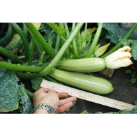 Кабачок Грибовський--Середньостиглий - 46-52 днів. Рослина кущова, сильно розгалужене, сильноветвиста. Плід коротко-циліндричний, білий або світло-зелений. М“якоть біла, середньої щільності. Врожайність 4-7 кг/м2. Збір врожаю до 40 днів. Використовують молоді зав“язі, коли м“якоть ніжна, а насіння знаходиться в зародковому стані.Вага: 20шт------------------------------------------------------------------------------------Агротехніка.Під кабачки і патисони слід відводити ділянки з добре прогріваються, родючим грунтом. Надмірно вологі торф“яні та важкі глинисті грунти для них непридатні. Кислотність грунту повинна бути в межах рН 6-6,5.Грунт під кабачки копають восени після збирання попередньої культури на повну глибину перегнойного шару. Навесні ґрунт вирівнюють граблями, знищують бур“яни, а у другій половині травня під перекопування вносять гній або компост (1 -1,5 відра на 1 м2) і мінеральні добрива (15 г сечовини, 40 г суперфосфату і 20 г хлористого калію на 1 м ). У південних районах кабачки і патисони вирощують у відкритому грунті посівом насіння в грунт. У кліматичних умовах Нечорноземної зони кабачки, посіяні у відкритий ґрунт, або не дають врожаю, або він буває настільки низьким, що не виправдовує витрат, пов“язаних з їх вирощуванням. Тому для отримання задовільного врожаю кабачків і патисонів краще застосовувати горшечную розсаду. До моменту посадки (5-15 червня) розсаду з 2-3 добре розвиненим листям садять за схемою 1 X 1 м. При посадці в лунку стежать за тим, щоб горщики були щільно обтиснуті грунтом і опущені на 2-3 см нижче її поверхні. Високу ефективність одержують при внесенні в лунки перед посадкою органоминеральной суміші наступного складу: 0,5 відра перегною або компосту, 5 г сечовини, 20 г суперфосфату і 10 г хлористого калію. Посадку кабачків необхідно проводити з поливом, вносячи 1-2 л коди під одну рослину.Догляд за кабачками і патиссонами полягає в розпушуванні грунту навколо рослин, прополках, підгодівлях, поливах та боротьбі з шкідниками і хворобами.Урожай кабачків починають прибирати по досягненні споживчої стиглості плодів, тобто коли вони будуть довжиною 15-20 см і діаметром 5-7 див Таких розмірів плоди досягають через 8-12 днів після зав“язування. В цей час плодоніжка соковита, неогрубевшая і плоди при збиранні легко зрізаються ножем. При масовому зав“язуванні плодів і сприятливих зовнішніх умов відбувається швидкий їх ріст. В цей період необхідно збирати кабачки щодня, не допускаючи їх переростання. Плоди патисонів для цільноплідного консервування, маринування та соління прибирають у віці 3-5 днів після зав“язування, по досягненні розміру 5-7 см в діаметрі, масою 35-70 р.