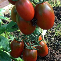 Томат Де Барао чорний --Середньопізній - 120 днів. Рослина високоросла, до 2м. Плід овальний, сливовидної форми, червоно-коричневого кольору, м“ясистий, солодкий на смак, масою 60-90г. Врожайність 5,5-6,8 кг / м 2 . Обов“язкове підв“язування кущів. Вимагає пасинкування. Плодоносить до заморозків. Дуже смачні - як свіжі, так і консервовані. Використовують у свіжому вигляді та для консервування. Вирощують розсадним способом.