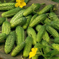 Огірок Джерело--Ранньостиглий - 40-45 днів. Рослина середньоплетиста. Зеленець циліндричний, довжиною 10-12 см, масою 60-70 р. Поверхня горбкувата, з чіткими смугами до половини довжини. Врожайність 2,2-3,5 кг/м2. Плодоносить до 2-х місяців. Використовують у свіжому вигляді, для консервування та соління.Вага: 1г--------------------------------------------------------------------- Огірок - однорічна трав“яниста рослина сімейства гарбузових. Стебло у огірка розгалужене, густо опушені. Довжина стебла варіюється в залежності від сорту і умов вирощування. Рослини огірка досить вимогливі до умов середовища і, насамперед, до тепла. Насіння огірків не проростає при температурі нижче 12-13 ° С. При температурі повітря 14 ° С сходи з“являються через 15 днів, при 18 ° С - через 7, а при температурі 22-23 ° С - через 5 днів. Оптимальною для проростання насіння є температура 25 ° С. Навіть невеликі заморозки (0 ... - 2 ° С) призводять до загибелі рослини. Тому зростання огірків у відкритому грунті можливо лише протягом періоду без морозів. При температурі 10-12 ° С ріст надземних і кореневої систем припиняється, і листя набувають жовтуватий відтінок через руйнування хлорофілу. ПОПЕРЕДНИКИ та місце в сівозмініУ сівозміні хорошими попередниками для цієї культури є багаторічні трави, однорічні кормові суміші, зернові та зернобобові культури, кукурудза на зелений корм і ранній силос, капуста, перець, морква, цибуля. Не варто сіяти огірок після гарбуза, кавуна, столового, кормового та цукрового буряка, соняшника, томату. Щоб уникнути масового поширення хвороб, особливо фузаріозного в“янення, антракнозу, бактеріозу, в сівозміні огірки повертають на колишнє місце не раніше, ніж через 4 роки. ДОБРИВА Для формування 1т продукції огірки, залежно від сорту (гібриду), споживають 2,7-3 кг азоту, 1,5-2 кг Р 2 О 5 , 4,2 - 4,5 кг До 2 О. На початку вегетації рослини інтенсивніше від інших елементів засвоюють азот, а при утворенні пагонів і плодоношення – Калій. ВИРОЩУВАННЯ РОЗСАДИРозсадний спосіб вирощування огірка дозволяє не тільки одержати ранній урожай плодів (раніше на 2-3 тижні), але і забезпечує більшу кількість ранньої продукції (до 70-80%) і високий стабільний врожай.Висівати насіння на розсаду необхідно з таким розрахунком, щоб до висадки в грунт вік розсади був 20-25 днів. Так як огірки погано переносять пересадку, розсаду слід вирощувати в горщиках або в касетах. Використовують торфоперегнійні горщечки або кубики розміром 6х6 або 8х8 див. Поживна суміш повинна бути легкою по механічному складу, пухкої, не утворювати кірку, повітро - і влагопроніцаємой, багатим органічними речовинами та елементами мінерального живлення, без насіння бур“янів, шкідників і хвороботворних патогенів. Для приготування живильної суміші використовують торф, дернову землю, перегній та інші речовини. Насіння можна висівати як сухі, так і пророщені. Температуру повітря після посіву підтримують на рівні 27-28 °С. Після появи сходів її знижують до 16-18 °С, щоб рослини не витягувалися, а через тиждень знову підвищують до 18-25 °С. В нічний час температура повинна бути на рівні 12-14 °С. Готова розсада повинна мати 3-4 справжніх листки. Перед висадкою розсади необхідно загартувати. Для цього за тиждень до висадки у відкритий грунт зменшують поливи і температуру, збільшують тривалість провітрювання теплиць, а перед висадкою залишають відкритими теплиці на ніч. У теж ч