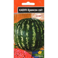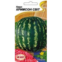 Кавун Кримсон Світ--Надранній– 58-67 днів. Рослина середньоплетиста. Плід великий, темно-зелений з світло-зеленими смужками, круглий, масою 3,5-5 кг М“якуш яскраво-червона, ніжна, соковита, солодка. Врожайність 5,5-6,5 кг/м2. Транспортабельний. Використовують у свіжому вигляді.Вага: 2г---------------------------------------------------------------------------Вирощування кавуна Виростити кавун досить нескладно, але для того, щоб вирощений вами кавун виявився солодким і в той же час корисним, — необхідно дотримуватися деяких нижчевикладених правил вирощування.Кавун пред“являє високі вимоги по трьом параметрам — світло, тепло, вологість. Цукристість кавуна, вміст вітамінів і сухих поживних речовин залежить від умов вирощування.Температура. Найбільш придатним для вирощування кавуна вважається сухий і жаркий клімат. Насіння кавуна починають проростати при температурі +16 — +180С. Для того щоб успішно пройшов процес запліднення зав“язі, потрібно вже +18 — +250С, а для нормального росту і подальшого розвитку їх— +25 — +300С.Посадка. Оскільки заморозків кавун не переносить, вирощувати цю культуру доцільніше розсадою, висаджуючи її у другій половині травня. Якщо ж все — таки ви вирішили провести посадку насіння кавуна, то попередньо необхідно в обов“язковому порядку загартовування насіння для підвищення їх хладоустойчивости. Для цієї мети насіння кавуна замочують і піддають потім 1 — 2 добовому загартовуванню температурою від 0 до 200С.Вибираючи сорт кавуна для посадки, потрібно знати, що більш ранні сорти зазвичай менш цукристі, ніж пізні, але середньопізні і пізньостиглі сорти мають термін вегетації 95 доби і в умовах центральної України можуть не встигнути визріти. Тому в цьому випадку краще вибрати ранньостиглі сорти.Полив. Кавун посухостійкий, але, в теж час обожнює рясний полив і з задоволенням вбирає вологу в свої плоди. Але, пам“ятайте, що чим рясніше полив — тим нижче цукристість м“якоті кавуна, тим менше він стійкий до захворювань. Тому, у другій половині вегетації, після цвітіння поливи рекомендують припинити.Освітлення. Інший фактор, що впливає на корисні властивості кавуна — освітленість. При недоліку світла, в похмуру погоду, вміст цукрів, сухих речовин значно знижується, зменшується розмір і врожайність кавуна. У зв“язку з цими моментами, для вирощування кавуна використовують місця на ділянках, добре освітлені сонцем. Як правило це південні, південно — східні і південно — західні схили.Грунт. Віддає перевагу кавун механічно легкі або супіщані ґрунти, які швидко прогріваються. Добриво. Для підвищення цукристості арбузов рекомендується внесення добрив. Найкраще органічне добриво — перепрілий гній. Свіжий гній не рекомендується, у зв“язку з погіршенням смакових якостей плодів і зниження їх врожайності. Вносять мінеральні добрива восени при перекопуванні (у складі: половинна доза фосфору і азоту і половинна доза калію). Занадто великі дози азотних добрив негативно позначаються на цукристості плодів, які виростають великими, але позбавленими смаку. Крім того , є ризик занесення в організм надлишкових доз нітратів.