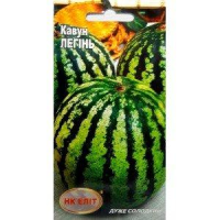 Кавун Легінь --Ранньостиглий – 70-75 днів. Плід круглий, поверхня гладка або сегментована. Колір фону плодів зелений, малюнок – чорно-зелені мозаїчні смуги середньої ширини. Кора середньої товщини. М“якоть малинового кольору, ніжна, соковита, дуже солодка. Маса середнього плоду 6-7 кг Урожайність 4,5-5 кг/м2. Транспортабельний. Плоди можуть зберігатися протягом 30 днів. Для свіжого використання.Вага: 2г ---------------------------------------------------------------------------Вирощування кавуна Виростити кавун досить нескладно, але для того, щоб вирощений вами кавун виявився солодким і в той же час корисним, — необхідно дотримуватися деяких нижчевикладених правил вирощування.Кавун пред“являє високі вимоги по трьом параметрам — світло, тепло, вологість. Цукристість кавуна, вміст вітамінів і сухих поживних речовин залежить від умов вирощування.Температура. Найбільш придатним для вирощування кавуна вважається сухий і жаркий клімат. Насіння кавуна починають проростати при температурі +16 — +180С. Для того щоб успішно пройшов процес запліднення зав“язі, потрібно вже +18 — +250С, а для нормального росту і подальшого розвитку їх— +25 — +300С.Посадка. Оскільки заморозків кавун не переносить, вирощувати цю культуру доцільніше розсадою, висаджуючи її у другій половині травня. Якщо ж все — таки ви вирішили провести посадку насіння кавуна, то попередньо необхідно в обов“язковому порядку загартовування насіння для підвищення їх хладоустойчивости. Для цієї мети насіння кавуна замочують і піддають потім 1 — 2 добовому загартовуванню температурою від 0 до 200С.Вибираючи сорт кавуна для посадки, потрібно знати, що більш ранні сорти зазвичай менш цукристі, ніж пізні, але середньопізні і пізньостиглі сорти мають термін вегетації 95 доби і в умовах центральної України можуть не встигнути визріти. Тому в цьому випадку краще вибрати ранньостиглі сорти.Полив. Кавун посухостійкий, але, в теж час обожнює рясний полив і з задоволенням вбирає вологу в свої плоди. Але, пам“ятайте, що чим рясніше полив — тим нижче цукристість м“якоті кавуна, тим менше він стійкий до захворювань. Тому, у другій половині вегетації, після цвітіння поливи рекомендують припинити.Освітлення. Інший фактор, що впливає на корисні властивості кавуна — освітленість. При недоліку світла, в похмуру погоду, вміст цукрів, сухих речовин значно знижується, зменшується розмір і врожайність кавуна. У зв“язку з цими моментами, для вирощування кавуна використовують місця на ділянках, добре освітлені сонцем. Як правило це південні, південно — східні і південно — західні схили.Грунт. Віддає перевагу кавун механічно легкі або супіщані ґрунти, які швидко прогріваються. Добриво. Для підвищення цукристості арбузов рекомендується внесення добрив. Найкраще органічне добриво — перепрілий гній. Свіжий гній не рекомендується, у зв“язку з погіршенням смакових якостей плодів і зниження їх врожайності. Вносять мінеральні добрива восени при перекопуванні (у складі: половинна доза фосфору і азоту і половинна доза калію). Занадто великі дози азотних добрив негативно позначаються на цукристості плодів, які виростають великими, але позбавленими смаку. Крім того , є ризик занесення в організм надлишкових доз нітратів.