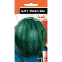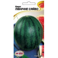 Кавун Північне сяйво-- Ультраскоростиглий – 60-65 днів. Рослина середньоплетиста. Плід невеликий, зелений без чіткого візерунку, круглий, темно-зелений, масою до 2,5 кг М“якоть червона, ніжна, соковита, солодка. Урожайність 3,5-4,5 кг/м2. Не переносить заморозків. Використовують у свіжому вигляді, має лікувальні властивості.Вага: 2г----------------------------------------------------------------Вирощування кавуна Виростити кавун досить нескладно, але для того, щоб вирощений вами кавун виявився солодким і в той же час корисним, — необхідно дотримуватися деяких нижчевикладених правил вирощування.Кавун пред“являє високі вимоги по трьом параметрам — світло, тепло, вологість. Цукристість кавуна, вміст вітамінів і сухих поживних речовин залежить від умов вирощування.Температура. Найбільш придатним для вирощування кавуна вважається сухий і жаркий клімат. Насіння кавуна починають проростати при температурі +16 — +180С. Для того щоб успішно пройшов процес запліднення зав“язі, потрібно вже +18 — +250С, а для нормального росту і подальшого розвитку їх— +25 — +300С.Посадка. Оскільки заморозків кавун не переносить, вирощувати цю культуру доцільніше розсадою, висаджуючи її у другій половині травня. Якщо ж все — таки ви вирішили провести посадку насіння кавуна, то попередньо необхідно в обов“язковому порядку загартовування насіння для підвищення їх хладоустойчивости. Для цієї мети насіння кавуна замочують і піддають потім 1 — 2 добовому загартовуванню температурою від 0 до 200С.Вибираючи сорт кавуна для посадки, потрібно знати, що більш ранні сорти зазвичай менш цукристі, ніж пізні, але середньопізні і пізньостиглі сорти мають термін вегетації 95 доби і в умовах центральної України можуть не встигнути визріти. Тому в цьому випадку краще вибрати ранньостиглі сорти.Полив. Кавун посухостійкий, але, в теж час обожнює рясний полив і з задоволенням вбирає вологу в свої плоди. Але, пам“ятайте, що чим рясніше полив — тим нижче цукристість м“якоті кавуна, тим менше він стійкий до захворювань. Тому, у другій половині вегетації, після цвітіння поливи рекомендують припинити.Освещение. Другой фактор, влияющий на полезные свойства арбуза — освещенность. При недостатке света, в пасмурную погоду, содержание сахаров, сухих веществ значительно снижается, уменьшается размер и урожайность арбуза. В связи с этими моментами, для выращивания арбуза используют места на участках, хорошо освещенные солнцем. Как правило это южные, юго — восточные и юго — западные склоны.Почва. Предпочитает арбуз механически легкие или супесчаные почвы, которые быстро прогреваются. Добриво. Для підвищення цукристості арбузов рекомендується внесення добрив. Найкраще органічне добриво — перепрілий гній. Свіжий гній не рекомендується, у зв“язку з погіршенням смакових якостей плодів і зниження їх врожайності. Вносять мінеральні добрива восени при перекопуванні (у складі: половинна доза фосфору і азоту і половинна доза калію). Занадто великі дози азотних добрив негативно позначаються на цукристості плодів, які виростають великими, але позбавленими смаку. Крім того , є ризик занесення в організм надлишкових доз нітратів.