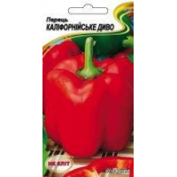 Перець Каліфорнійське чудо-- Середньоранній –105-129 днів. Рослина висока, 65-70см, компактне. Плоди кубовидної форми, гладкі і блискучі, від зеленого доярко-червоного кольору, м“ясисті, солодкі, смачні, масою 150-220 г, товщина стінки 4,0-8,3 мм. Смакові якості чудові. Урожайність 3 кг/м2. Використовують у свіжому вигляді та для консервування.Вага: 0.3 г------------------------------------------------------------------------------------Сорти перцю поділяють на солодкі й гострі, або гіркі. Провідне місце належить овочевому (солодкого) перцю з ніжною, соковитою і м“ясистою м“якоттю, який використовується в різних видах: у свіжому в якості салату, консервованому, засоленому, тушкованому, фаршированому та інших.Лікувальні властивості перцюПерець ні в якому разі не можна висаджувати в грунт, якщо раніше там росли рослини сімейства пасльонових, кращими попередниками для перцю в ґрунті є багаторічні трави, цибулю, а також огірки і капуста рання. На колишнє місце зростання, перець можна повертати через 3-4 роки, саме цей час потрібно землі для свого повного відновлення родючості для перцю. Існує правда і виключення, коли грунт може відновлюватися швидше цього терміну, таке можливо тільки при використанні ЕМ-технологій. Пересадки перець переносить вкрай погано, через слабку регенерацію кореневої системи, саме з цієї причини, розсаду перцю, як правило, вирощують у касетах або горщиках. Для пророщування насіння перцю оптимальною температурою повітря вважається 18-22С, мінімальною температурою для пророщування насіння є 16-19С, а для грунту це 14-16С. Молоденькі сходи, перш ніж їх будуть знижуватись, поливають двічі на тиждень розчином кальцієвої селітри, яка розлучатися 1г на 1л води. Коренева система перців інтенсивно розвивається до того моменту, як починають утворюватися плоди. Щоб допомогти інтенсивному розвитку кореневої системи перцю, часто використовують стимулятор росту «Радифарм», який розлучатися 200-250 г на 100 л води, інтервал у використанні цього стимулятора приблизно 10-12 днів. Далі необхідно робити комплексні підживки перцю, як кореневими, так і не кореневими добривами, наприклад, добрива кореневі «Майстер» і не кореневі «Плантафол». Перед садінням у відкритий грунт перець повинен мати не менше 6-7 справжніх листків, і вік перцю повинен бути приблизно 40-50 днів. Перед тим, як висаджувати розсаду перцю в грунт, її необхідно загартувати. Приблизно за кілька днів, а саме, 3-4 дні до висадки перцю у відкритий грунт, рослина потрібно підгодувати «Превікуром», який розводиться 15-20мл на 10л води.вирощування перцюПри вирощування перцю у відкритому грунті, слід пам“ятати, ні в якому разі перцю не можна давати пересихати, так як перець дуже вимогливий до вологості грунту і не виносить навіть короткочасної посухи і перегріву. Щоб рослини могли легше переносити різні стресові умови, перцю потрібно провести підгодівлю некорневую стимуляторами, наприклад, такими як добриво, Мегафон або можна використовувати стимулятор із серії «Марс». Найкраще в несприятливих умовах виживають гібриди перців, такі як Микита, Геркулес та Денвер.Перцю необхідно час від часу проводити розпушування грунту, так як ці рослини дуже чутливі до повітряного режиму грунту. Щоб запобігти розвиток верхівкової гнилі, регулярно потрібно проводити підживлення добривами, що містять кальцій. Крім кореневих підживлень, потрібно п
