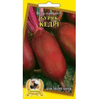 Буряк Кедри--Середньостиглий – 95-120дней.Високоврожайний сорт. Коренеплід циліндричної форми, темно-червоний з темно-фіолетовим відтінком, діаметром 4-6см, легко виймається з грунту, массой200-320г. М“якоть темно-червона, соковита, без білих прожилок, дуже смачна. Врожайність 4,1-6,9