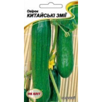 Огірок Китайські змії--Середньостиглий– 48-52 дні. Рослина середньоплетиста. Плід циліндричний, довжиною 15-26см, тоненький, середньо горбкуватий, темно-зеленого забарвлення. Цінується за відмінні смакові якості. Врожайність 3,4,0-4,6 кг/м2. Сорт для відкритого та закритого ґрунту. Використовують у свіжому вигляді.