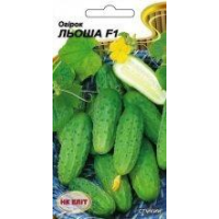 Огірок Льоша--Ранньостиглий – 42-46 днів. Переважно жіночого типу цвітіння. Плід продовжений овальний, невеликий, масою 46г, зелений з великими горбиками на поверхні. Врожайність 2,7-4,5 кг/м2. Плоди не схильні до пожовтіння навіть при переростанні, довго зберігають товарність. Універсального використання.Вага: 15 шт.--------------------------------------------------------------------- Огірок - однорічна трав“яниста рослина сімейства гарбузових. Стебло у огірка розгалужене, густо опушені. Довжина стебла варіюється в залежності від сорту і умов вирощування. Рослини огірка досить вимогливі до умов середовища і, насамперед, до тепла. Насіння огірків не проростає при температурі нижче 12-13 ° С. При температурі повітря 14 ° С сходи з“являються через 15 днів, при 18 ° С - через 7, а при температурі 22-23 ° С - через 5 днів. Оптимальною для проростання насіння є температура 25 ° С. Навіть невеликі заморозки (0 ... - 2 ° С) призводять до загибелі рослини. Тому зростання огірків у відкритому грунті можливо лише протягом періоду без морозів. При температурі 10-12 ° С ріст надземних і кореневої систем припиняється, і листя набувають жовтуватий відтінок через руйнування хлорофілу. ПОПЕРЕДНИКИ та місце в сівозмініУ сівозміні хорошими попередниками для цієї культури є багаторічні трави, однорічні кормові суміші, зернові та зернобобові культури, кукурудза на зелений корм і ранній силос, капуста, перець, морква, цибуля. Не варто сіяти огірок після гарбуза, кавуна, столового, кормового та цукрового буряка, соняшника, томату. Щоб уникнути масового поширення хвороб, особливо фузаріозного в“янення, антракнозу, бактеріозу, в сівозміні огірки повертають на колишнє місце не раніше, ніж через 4 роки. ДОБРИВА Для формування 1т продукції огірки, залежно від сорту (гібриду), споживають 2,7-3 кг азоту, 1,5-2 кг Р 2 О 5 , 4,2 - 4,5 кг До 2 О. На початку вегетації рослини інтенсивніше від інших елементів засвоюють азот, а при утворенні пагонів і плодоношення – Калій. ВИРОЩУВАННЯ РОЗСАДИРозсадний спосіб вирощування огірка дозволяє не тільки одержати ранній урожай плодів (раніше на 2-3 тижні), але і забезпечує більшу кількість ранньої продукції (до 70-80%) і високий стабільний врожай.Висівати насіння на розсаду необхідно з таким розрахунком, щоб до висадки в грунт вік розсади був 20-25 днів. Так як огірки погано переносять пересадку, розсаду слід вирощувати в горщиках або в касетах. Використовують торфоперегнійні горщечки або кубики розміром 6х6 або 8х8 див. Поживна суміш повинна бути легкою по механічному складу, пухкої, не утворювати кірку, повітро - і влагопроніцаємой, багатим органічними речовинами та елементами мінерального живлення, без насіння бур“янів, шкідників і хвороботворних патогенів. Для приготування живильної суміші використовують торф, дернову землю, перегній та інші речовини. Насіння можна висівати як сухі, так і пророщені. Температуру повітря після посіву підтримують на рівні 27-28 °С. Після появи сходів її знижують до 16-18 °С, щоб рослини не витягувалися, а через тиждень знову підвищують до 18-25 °С. В нічний час температура повинна бути на рівні 12-14 °С. Готова розсада повинна мати 3-4 справжніх листки. Перед висадкою розсади необхідно загартувати. Для цього за тиждень до висадки у відкритий грунт зменшують поливи і температуру, збільшують тривалість провітрювання теплиць, а перед висадкою залишають відкритими теплиці н