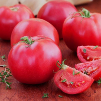 Томат Малиновий мішка--Середньоранній - 105-116 днів. Рослина низькоросла, висотою 40-55см. Кущ розлогий. Плоди округлі, малиновою забарвлення, масою 200-350г. М“якоть малиновий, м“ясистий, соковитий, солодкий на смак. Час цвітіння і дозрівання помірний. Смакові якості високі. Використовуються у свіжому вигляді. Вирощують розсадним способом.