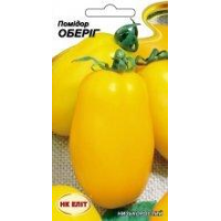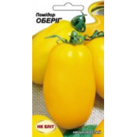 Томат Оберіг--Середньостиглий сорт, від сходів до початку дозрівання плодів -110 днів. Кущ детермінантний, заввишки 60-75 див. Плід сливовидної форми, жовтого кольору. Універсального використання. Культура тепло - та світлолюбна. Вирощувати розсадою або висівом насіння в грунт. Насіння перед висівом краще обробляти 1% розчином марганцевокислого калію. Посів насіння на глибину 1-1,5 см. Висаджувати розсаду у віці 50-60 днів. Потребує легких родючих грунтів. Добре реагує на удобрення грунту.Вага:0,1 г ------------------------------------------------------------------------------------Томат (Lycopersicon esculentum Mill.) - однорічна трав“яниста рослина родини пасльонових. Стебло або вилягає, або прямостоячі (у штамбових сортів), дуже гіллясте, покрите залозистими волокнами, які виділяють смолиста речовина зеленовано-жовтого кольору зі специфічним запахом. На головному стеблі в пазухах листя виростають бокові пагони (пасинки). У низькорослих (детермінантних з обмеженим ростом) сортів перша квіткова кисть закладається над п“ятим-шостим листом, а наступні кисті - через один-два аркуша. Тому ці сорти відрізняються більшою скоростиглістю та дружнім плодоносінням і дозріванням. У високорослих (індетермінантних) сортів перша квіткова кисть закладається над сьомим-дев“ятим листком, а наступні - через два-три аркуші. Це пізньостиглі, з розтягнутим плодоношенням сорту.Квітки в томату двостатеві, з п“ятьма-шістьма пелюстками і такою ж кількістю тичинок, з“єднаних в конусоподібний стовпчик, всередині якого знаходиться маточка. Томат в основному самозапильник, але в довготичинкових квіток можливо і перехресне запилення (на півдні - з допомогою трипсів). Суцвіття поділяються на прості і розгалужені.Плоди відрізняються за розміром, формою, забарвленням і кількістю камер, тобто за кількістю насіннєвих гнізд (камер). Чим менше розмір камер і товщі їх стінки, тим більше м“ясистість плодів. Дрібноплідні сорти зазвичай мають мало камер, і у них більше насіння; великоплідні - багатокамерні з меншою кількістю насіння. Насіння жовтувато-сірі, опушені, плоско-округлі. Маса 1000 насіння 2,5-4 г (200-250 шт. В 1 г).Коренева система томату міститься в основному в орному шарі ґрунту, окремі корені проникають вглиб і в сторони до 2 м. видалення бічних пагонів (пасинків) і, отже, при скороченні асиміляційного апарату значно зменшується і потужність кореневої системи. При розсадної культури основна маса коренів не проникає глибше 40-50 см і поширюється в радіусі до 60 див. Придаткові коріння легко утворюються при тривалому контакті стебел з вологим грунтом. При безрассадной культурі зберігається стрижневий корінь, занурений в грунт, і зростає глибина проникнення кореневої системи. Різницю в формуванни кореневои системи і стійкості рослин при несприятливих умовах необхідно враховувати при виборі способів вирощування томатів.Томат - теплолюбна культура. Його насіння проростає при температурі не нижче 11 ° СПри температурі нижче 15 ° С припиняється цвітіння, а при 10 ° С припиняється і при мінус 0,5 ° С гинуть квітки, а при -1 ° С відмирають листя і стебла. Однак холодостійкі при наливанні плодів вони уражаються верхової гниллю. При різкій зміні посушливого періоду на вологий плоди розтріскуються.Оптимальна вологість ґрунту для томата знаходиться в межах 70-80% НВ, завис від фази розвитку рослин.Критичним при необхідності рослини у