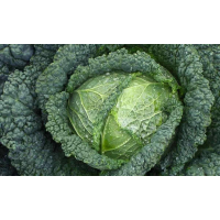 Капуста Савойська--Пізньостиглий - 130-150 днів. Головка сіро-зелена, велика, масою 1,2-2,7 кг, щільна, створюється з гофрованих, дрібно пухирчастих, тонких листків. Головка містить 7-14% сухої речовини, 20-90 мг% вітаміну С, а також вітаміни В1, В2, В6, РР, солі натрію, калію, кальцію, фосфору, магнію. Врожайність 5,6-7 кг/ м2. Використовують у свіжому вигляді і для переробки.Вага: 1г---------------------------------------------------------------------------