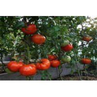 Томат Шапка Мономаха--Середньостиглий - 115-125 днів. Кущ заввишки до 1,5 м. Плоди слабо ребристі, округлі, червоного кольору, дуже великі, масою до 1 кг і більше. Дуже гарні на вигляд і мають високі смакові якості. М“якуш солодкий. Урожайність дуже висока. Сорт стійкий до хвороб. Використовують у свіжому вигляді.