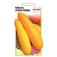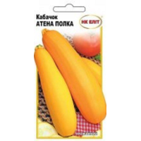 Кабачок Атена Полку- Ранньостиглий – 39-43 дня від сходів до початку плодоношення. Урожайний. Рослина середньої потужності з компактним кущем. Плід циліндричний з незначною ребристістю, жовтий, маса товарного плоду, 0,3 кг, довжиною 20-23см. М“якоть біла, ніжна, середньої щільності. Врожайність 4,3 кг/м2. Відносно стійкий до хвороб. Використовують для консервування та переробки.Вага: 10шт-------------------------------------------------------------------------------------Агротехніка. Під кабачки і патисони слід відводити ділянки з добре прогріваються, родючим грунтом. Надмірно вологі торф“яні та важкі глинисті грунти для них непридатні. Кислотність грунту повинна бути в межах рН 6-6,5.Грунт під кабачки копають восени після збирання попередньої культури на повну глибину перегнойного шару. Навесні ґрунт вирівнюють граблями, знищують бур“яни, а у другій половині травня під перекопування вносять гній або компост (1 -1,5 відра на 1 м2) і мінеральні добрива (15 г сечовини, 40 г суперфосфату і 20 г хлористого калію на 1 м ). У південних районах кабачки і патисони вирощують у відкритому грунті посівом насіння в грунт. У кліматичних умовах Нечорноземної зони кабачки, посіяні у відкритий ґрунт, або не дають врожаю, або він буває настільки низьким, що не виправдовує витрат, пов“язаних з їх вирощуванням. Тому для отримання задовільного врожаю кабачків і патисонів краще застосовувати горшечную розсаду. До моменту посадки (5-15 червня) розсаду з 2-3 добре розвиненим листям садять за схемою 1 X 1 м. При посадці в лунку стежать за тим, щоб горщики були щільно обтиснуті грунтом і опущені на 2-3 см нижче її поверхні. Високу ефективність одержують при внесенні в лунки перед посадкою органоминеральной суміші наступного складу: 0,5 відра перегною або компосту, 5 г сечовини, 20 г суперфосфату і 10 г хлористого калію. Посадку кабачків необхідно проводити з поливом, вносячи 1-2 л коди під одну рослину.Догляд за кабачками і патиссонами полягає в розпушуванні грунту навколо рослин, прополках, підгодівлях, поливах та боротьбі з шкідниками і хворобами.Урожай кабачків починають прибирати по досягненні споживчої стиглості плодів, тобто коли вони будуть довжиною 15-20 см і діаметром 5-7 див Таких розмірів плоди досягають через 8-12 днів після зав“язування. В цей час плодоніжка соковита, неогрубевшая і плоди при збиранні легко зрізаються ножем. При масовому зав“язуванні плодів і сприятливих зовнішніх умов відбувається швидкий їх ріст. В цей період необхідно збирати кабачки щодня, не допускаючи їх переростання.Плоди патисонів для цільноплідного консервування, маринування та соління прибирають у віці 3-5 днів після зав“язування, по досягненні розміру 5-7 см в діаметрі, масою 35-70 р.