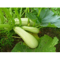 Кабачок Білоплідний--Ранньостиглий - 36-44 днів. Рослина кущова, сильно гіллясте. Плід циліндричний, білий, гладкий і блискучий, в основі ребристий. Маса плоду 300-700г. М“якоть біла, середньої щільності. Врожайність 5,2-7 кг/м2. Використовують молоді зав“язі, коли м“якоть ніжна, а насіння знаходяться в зародковому стані.