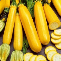 Кабачок Золотинка--Ранньостиглий - 45-50 днів. Рослина кущова. Плід цилиндрично-овальний форми, золотисто-жовтого кольору. М“якуш світло-жовтого кольору з ніжним солодким смаком. Врожайність 4-8 кг/ м2. Використовують для переробки і консервування. Збір врожаю до перших заморозків. Золотистий колір плодів при консервуванні зберігається.