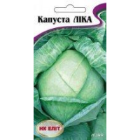 Капуста пізня Ліка--Пізньостигла - 140-160 днів. Універсального призначення. Транспортабельна. Головка округло-плеската, масою 3-4кг, щільна (4,7-5 балів), з невеликими порожнинами біля качана, переріз білий. Внутрішній качан середній (50-60% висоти головки). Врожайність 5-7 кг/ м2. Використовують у свіжому, квашеному вигляді і для зберігання (до 8 місяців). Вага: 1г----------------------------------------------------------------------------------------
