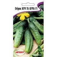 Огірок Кум та Кума F1--Середньоранній бджолозапильний гібрид, період від сходів до початку плодоношення - 45-48 днів. Призначений для відкритого ґрунту і плівкових укриттів. Рослина жіночого типу цвітіння. Зеленці циліндричні, великобугорчаті, білошипі, масою 80-100г, не жовтіють, тривалий час після збору зберігають прекрасні споживчі якості. Смак відмінний, огірочки соковиті, хрусткі, без гіркоти. Підходять для засолювання, консервування та споживання у свіжому вигляді. Сорт стійкий до погодних стресів.