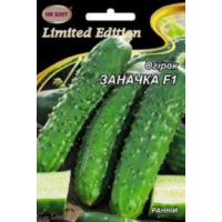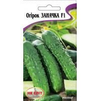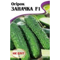 Огірок Заначка--Бджолозапильний гібрид. Призначений для вирощування у відкритому ґрунті і під плівкою. Вступає в плодоношення через 38-40 днів після появи сходів. Рослини середньо рослі, сильно розгалужені. Плоди циліндричні, довжиною 10-12см, діаметром 3,5-4,0 см, масою 110-130г, темно — зелені з невеликими світлими смугами. Горбки середнього розміру, розташовані рідко. Використання універсальне (у свіжому вигляді, засолювання, маринування).