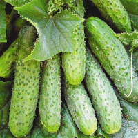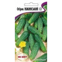 Ніжинський огірок--Середньопізній - 60 днів. Рослина довго плетиста. Листок темно-зелений, довжиною 9-13 см, діаметром 3,5-5 см, масою 90-140 г, поверхня горбкувата. Врожайність 2,2-3,5 кг/м2. Вимогливий до вологи і відносно стійкий до грибкових захворювань. Найкращий сорт для соління.Вага: 1г--------------------------------------------------------------------- Огірок - однорічна трав“яниста рослина сімейства гарбузових. Стебло у огірка розгалужене, густо опушені. Довжина стебла варіюється в залежності від сорту і умов вирощування. Рослини огірка досить вимогливі до умов середовища і, насамперед, до тепла. Насіння огірків не проростає при температурі нижче 12-13 ° С. При температурі повітря 14 ° С сходи з“являються через 15 днів, при 18 ° С - через 7, а при температурі 22-23 ° С - через 5 днів. Оптимальною для проростання насіння є температура 25 ° С. Навіть невеликі заморозки (0 ... - 2 ° С) призводять до загибелі рослини. Тому зростання огірків у відкритому грунті можливо лише протягом періоду без морозів. При температурі 10-12 ° С ріст надземних і кореневої систем припиняється, і листя набувають жовтуватий відтінок через руйнування хлорофілу. ПОПЕРЕДНИКИ та місце в сівозмініУ сівозміні хорошими попередниками для цієї культури є багаторічні трави, однорічні кормові суміші, зернові та зернобобові культури, кукурудза на зелений корм і ранній силос, капуста, перець, морква, цибуля. Не варто сіяти огірок після гарбуза, кавуна, столового, кормового та цукрового буряка, соняшника, томату. Щоб уникнути масового поширення хвороб, особливо фузаріозного в“янення, антракнозу, бактеріозу, в сівозміні огірки повертають на колишнє місце не раніше, ніж через 4 роки. ДОБРИВА Для формування 1т продукції огірки, залежно від сорту (гібриду), споживають 2,7-3 кг азоту, 1,5-2 кг Р 2 О 5 , 4,2 - 4,5 кг До 2 О. На початку вегетації рослини інтенсивніше від інших елементів засвоюють азот, а при утворенні пагонів і плодоношення – Калій. ВИРОЩУВАННЯ РОЗСАДИРозсадний спосіб вирощування огірка дозволяє не тільки одержати ранній урожай плодів (раніше на 2-3 тижні), але і забезпечує більшу кількість ранньої продукції (до 70-80%) і високий стабільний врожай.Висівати насіння на розсаду необхідно з таким розрахунком, щоб до висадки в грунт вік розсади був 20-25 днів. Так як огірки погано переносять пересадку, розсаду слід вирощувати в горщиках або в касетах. Використовують торфоперегнійні горщечки або кубики розміром 6х6 або 8х8 див. Поживна суміш повинна бути легкою по механічному складу, пухкої, не утворювати кірку, повітро - і влагопроніцаємой, багатим органічними речовинами та елементами мінерального живлення, без насіння бур“янів, шкідників і хвороботворних патогенів. Для приготування живильної суміші використовують торф, дернову землю, перегній та інші речовини. Насіння можна висівати як сухі, так і пророщені. Температуру повітря після посіву підтримують на рівні 27-28 °С. Після появи сходів її знижують до 16-18 °С, щоб рослини не витягувалися, а через тиждень знову підвищують до 18-25 °С. В нічний час температура повинна бути на рівні 12-14 °С. Готова розсада повинна мати 3-4 справжніх листки. Перед висадкою розсади необхідно загартувати. Для цього за тиждень до висадки у відкритий грунт зменшують поливи і температуру, збільшують тривалість провітрювання теплиць, а перед висадкою залишають відкритими теплиці на ніч. У теж час не можна допускат