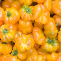 Перець Сонечко--Середньоранній – 107-118 днів. Кущ штамбовий, висотою 40-50см. Рослина формує округлоребристые плоди масою 100-150г, з товщиною стінки 6-8мм, жовто-оранжевого кольору. М“якоть соковита, солодка. Врожайність висока. Стійкий до хвороб. Використовують у свіжому вигляді, при консервуванні та приготування лечо. Вирощують розсадним способом.Вага: 0.3 г ------------------------------------------------------------------------------------Сорти перцю поділяють на солодкі й гострі, або гіркі. Провідне місце належить овочевому (солодкого) перцю з ніжною, соковитою і м“ясистою м“якоттю, який використовується в різних видах: у свіжому в якості салату, консервованому, засоленому, тушкованому, фаршированому та інших.Лікувальні властивості перцюПерець ні в якому разі не можна висаджувати в грунт, якщо раніше там росли рослини сімейства пасльонових, кращими попередниками для перцю в ґрунті є багаторічні трави, цибулю, а також огірки і капуста рання. На колишнє місце зростання, перець можна повертати через 3-4 роки, саме цей час потрібно землі для свого повного відновлення родючості для перцю. Існує правда і виключення, коли грунт може відновлюватися швидше цього терміну, таке можливо тільки при використанні ЕМ-технологій. Пересадки перець переносить вкрай погано, через слабку регенерацію кореневої системи, саме з цієї причини, розсаду перцю, як правило, вирощують у касетах або горщиках. Для пророщування насіння перцю оптимальною температурою повітря вважається 18-22С, мінімальною температурою для пророщування насіння є 16-19С, а для грунту це 14-16С. Молоденькі сходи, перш ніж їх будуть знижуватись, поливають двічі на тиждень розчином кальцієвої селітри, яка розлучатися 1г на 1л води. Коренева система перців інтенсивно розвивається до того моменту, як починають утворюватися плоди. Щоб допомогти інтенсивному розвитку кореневої системи перцю, часто використовують стимулятор росту «Радифарм», який розлучатися 200-250 г на 100 л води, інтервал у використанні цього стимулятора приблизно 10-12 днів. Далі необхідно робити комплексні підживки перцю, як кореневими, так і не кореневими добривами, наприклад, добрива кореневі «Майстер» і не кореневі «Плантафол». Перед садінням у відкритий грунт перець повинен мати не менше 6-7 справжніх листків, і вік перцю повинен бути приблизно 40-50 днів. Перед тим, як висаджувати розсаду перцю в грунт, її необхідно загартувати. Приблизно за кілька днів, а саме, 3-4 дні до висадки перцю у відкритий грунт, рослина потрібно підгодувати «Превікуром», який розводиться 15-20мл на 10л води.вирощування перцюПри вирощування перцю у відкритому грунті, слід пам“ятати, ні в якому разі перцю не можна давати пересихати, так як перець дуже вимогливий до вологості грунту і не виносить навіть короткочасної посухи і перегріву. Щоб рослини могли легше переносити різні стресові умови, перцю потрібно провести підгодівлю некорневую стимуляторами, наприклад, такими як добриво, Мегафон або можна використовувати стимулятор із серії «Марс». Найкраще в несприятливих умовах виживають гібриди перців, такі як Микита, Геркулес та Денвер.Перцю необхідно час від часу проводити розпушування грунту, так як ці рослини дуже чутливі до повітряного режиму грунту. Щоб запобігти розвиток верхівкової гнилі, регулярно потрібно проводити підживлення добривами, що містять кальцій. Крім кореневих підживл