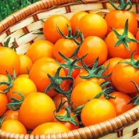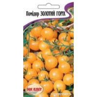 Томат Золотий Горіх---Середньоранній – 105-110дней. Сорт для відкритого та закритого ґрунту. Рослина велика, висотою більше 2м. Кисті прості і складні, в одній по 15-20 плодів. Плоди яскраво-жовті, гладкі, блискучі, круглі, масою 30-50г. Смак солодкий, ніжний. Використовуються у свіжому вигляді та для консервування. Вирощують розсадним способом.