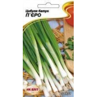 Цибуля Батун П“єро-- Середньостиглий - 105-110 днів. Багаторічна рослина. Салатного призначення. Листки ніжні, соковиті, довго не грубіють. Смак напівгострий. Врожайність 1,2-2,6 кг/м2. Добре росте в тіні. Переносить посуху. Листя відростає рано навесні, як тільки зійде сніг. Є джерелом перших вітамінів. Використовують свіже листя на зелень.Вага: 1г----------------------------------------------------------------З усіх видів цибулі найбільше поширення та народногосподарське значення має ріпчасту цибулю. Батьківщиною цієї цибулі є країни Середньої Азії. Цибуля ріпчаста багатий петательными речовинами такими як : вітамін С , цукор 10-12% , сухе речовина 13-20% і багато інших корисних речовин.Насіння цибулі, посеяные у відкритий грунт сухими, зазвичай сходять на 15-20 день. Сходи з“являються у вигляді петельок . Після того як виростає 8-10 листків , починає формироватся цибулина.Під цибулю вносять перегній або полупревший гній - 30 - 50 кг на 10 м2 . Мінеральні добрива краще вносити дрібно : 60% норми фосфорно-калійних добрив - з осені під зяблеву оранку , решту перед посівом і в підгодівлі : азотні добрива - 30% при розпушуванні грунту перед посівом , решта у вигляді підживлень. Сумарна норма добрив: аміачної селітри - 175 - 200 г , суперфосфату - 300 г, хлористого калію - 200 г на 10 м2. ВИРОЩУВАННЯНа легких грунтах насіння загортають на глибину 2 - 3 см, на звязані - на 1 - ,1,5 див. Схема стрічкового посіву на ровнорй поверхні -20 см між рядами, 50 см, між стрічками , на грядках - у 4 - 5 рядків з міжряддями 20 -25 див. Норма висіву насіння - 8 - 15 г на 10 м. Після посіву бажано замульчироватьб грунт перегноєм.Після появи всодов проводять рихлення міжрядь . прополювання бур“янів і проріджування. Відстані між рослинами в ряду залишають у південних районах 5 - 6 см, у середній смузі - 4 див. Підживлення проводять : 1 - у фазі появляния 3-го листка , 2 - через два тижні після першої.Коли цибулини дозріють і зовнішні луски преобретут відповідну забарвлення , їх висмикують і залишають для первісної просушування на грядках , а потім збирають і перевозять в сараї або під навіси для остаточного досушування.
