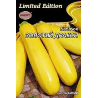 Кабачок Золотий дракон--Ранньостиглий - 43-48 днів від сходів до початку плодоношення. Урожайний. Рослина кущова. Листки середні, злегка гофровані. Плід видовжено-циліндричний, в технічній стиглості Бліда-жовтий, в біологічній - жовтий, маса товарного плоду 0,2-0,3 кг, довжина 15-21см. М“якоть біла, ніжна, середньої щільності. Врожайність 3,1-6,2 кг / м2. Стійкий до хвороб. Прекрасно підходить для консервації і переробки.Вага: 20г-----------------------------------------------------------------------------------Агротехніка.Під кабачки і патисони слід відводити ділянки з добре прогріваються, родючим грунтом. Надмірно вологі торф“яні та важкі глинисті грунти для них непридатні. Кислотність грунту повинна бути в межах рН 6-6,5.Грунт під кабачки копають восени після збирання попередньої культури на повну глибину перегнойного шару. Навесні ґрунт вирівнюють граблями, знищують бур“яни, а у другій половині травня під перекопування вносять гній або компост (1 -1,5 відра на 1 м2) і мінеральні добрива (15 г сечовини, 40 г суперфосфату і 20 г хлористого калію на 1 м ). У південних районах кабачки і патисони вирощують у відкритому грунті посівом насіння в грунт. У кліматичних умовах Нечорноземної зони кабачки, посіяні у відкритий ґрунт, або не дають врожаю, або він буває настільки низьким, що не виправдовує витрат, пов“язаних з їх вирощуванням. Тому для отримання задовільного врожаю кабачків і патисонів краще застосовувати горшечную розсаду. До моменту посадки (5-15 червня) розсаду з 2-3 добре розвиненим листям садять за схемою 1 X 1 м. При посадці в лунку стежать за тим, щоб горщики були щільно обтиснуті грунтом і опущені на 2-3 см нижче її поверхні. Високу ефективність одержують при внесенні в лунки перед посадкою органоминеральной суміші наступного складу: 0,5 відра перегною або компосту, 5 г сечовини, 20 г суперфосфату і 10 г хлористого калію. Посадку кабачків необхідно проводити з поливом, вносячи 1-2 л коди під одну рослину.Догляд за кабачками і патиссонами полягає в розпушуванні грунту навколо рослин, прополках, підгодівлях, поливах та боротьбі з шкідниками і хворобами.Урожай кабачків починають прибирати по досягненні споживчої стиглості плодів, тобто коли вони будуть довжиною 15-20 см і діаметром 5-7 див Таких розмірів плоди досягають через 8-12 днів після зав“язування. В цей час плодоніжка соковита, неогрубевшая і плоди при збиранні легко зрізаються ножем. При масовому зав“язуванні плодів і сприятливих зовнішніх умов відбувається швидкий їх ріст. В цей період необхідно збирати кабачки щодня, не допускаючи їх переростання.Плоди патисонів для цільноплідного консервування, маринування та соління прибирають у віці 3-5 днів після зав“язування, по досягненні розміру 5-7 см в діаметрі, масою 35-70 р.