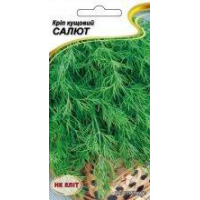 Кріп кущовий Салют--Пізньостиглий - 45-60 днів. Розетка велика, висотою 30-40 см, Листя темно-зелені, сильно розсічені, багаті ефірними маслами. Врожайність 2,1-3,2 кг / м2. Має особливість при зрізанні відростати до 3-4 разів. Довго не стрілкується. Використовують для приправ у свіжому вигляді, а також для консервування і засушуванняВага: 3г------------------------------------------------------------------------------------ Кріп - рослина сімейства зонтичних, однорічна культура, скоростигла, холодостійка, світлолюбива, не вибаглива до умов вирощування. Перезволоження грунту не переносить. Рослини на верхівці трубчастого, сильно розгалуженого стебла утворюють розетку запашних сильнорозсичених на нитковидні частки листя, потім - суцвіття, в якому дозріває насіння. Всі частини рослини містять ароматичне масло. ° З, молоді рослини витримують заморозки до мінус 6 ° С. Оптимальною для розвитку рослини є температура 15-22 ° С. Сходи з“являються через 10-20 днів. Рослини спочатку формують листя на вкороченому стеблі, яке згодом збільшується з міжвузлів, а на верхівці формується сховане в плівчату пихвочку суцвіття. Це і є фаза господарської стиглості зелені кропу, коли рослини формують більше зеленої маси. В ній накопичено більше цінних речовин. С, А, В2, В6, Р, РР, білок, мінеральні солі, зокрема, калію, кальцію, фосфору, заліза, магнію; клітковину, екстрактивні речовини, жирні та ефірні олії. Завдяки багатому хімічному складу кріп - цінне харчове рослина: споживання 50 г кропу можна прирівняти до споживання 150 г помидорив.2. Для технічної продукції кріп сіють рядковим способом з міжряддями 20-25 см і нормою висіву 7-10 г / м2. При посіві сухими насінням сходи одержують через 15-20, а намоченными - через 5-10 днів. Намочують насіння за 2-3 доби до висіву на 4-5 годин, міняючи два-три рази воду. Після цього насіння підсушують до сипучого стану. Значно прискорює появу сходів і сприяє збільшенню врожаю барбатация (обробка киснем у воді) 2. На посівах технічного кропу міжряддя розпушують через кожні 7-10 днів до початку цвітіння. Подекуди насіння кропу при посіві змішують з насіння салату або редиски (0,3%), продукцію яких вже збирають при появі сходів кропу.2. ° З, при появі сходів її на 3-4 діб знижують до 10 ° С. Рослини за короткий час утворюють велику масу зелені (за 20-50 днів), тому виносять з грунту багато поживних речовин. Технічну продукцію в воскової стиглості насіння рослини формують через 38-85 днів після появи сходів. У першій фазі кріп потребує значної кількості азоту, у другій - калію і фосфору. Можна вирощувати кріп попередньої або післязбиральної культурі. У харчуванні зелень кропу використовують в салатах, на додаток до інших овочів, як приправу до супів, м“яса і риби, у соусах. Взимку використовують і насіння. Технічний кріп - парасольку з недостиглим насінням - використовують при солінні і маринуванні овочів. Кріп придатний також для ароматизації та вітамінізації сиру, масла, оцту. Із-за сильного своєрідний аромат його часто використовують самостійно, не комбінуючи з іншими прянощами. Зелень заготовляють на зиму, засаливая або висушуючи в тіні. Її ароматна та інші корисні властивості не втрачаються. Рослини кропу розміщують на структурних, легко, не перезволожених ґрунтах. Кращі попередники для нього - просапні культури, під які вносили органічні і мінеральні добрива. Під зяблеву оранку на ділянці вносять Р15 